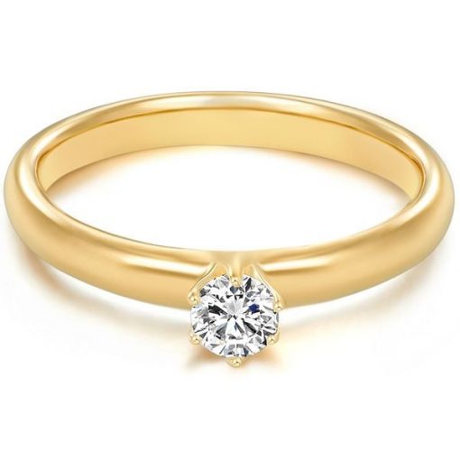 Trilani Srebrny pierścionek srebro wysokiej próby Cyrkonia żółte złoto Pierścionki 1 ct Damski