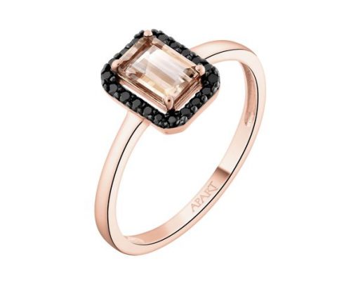 Pierścionek z różowego złota z czarnymi brylantami i morganitem – próba 585
