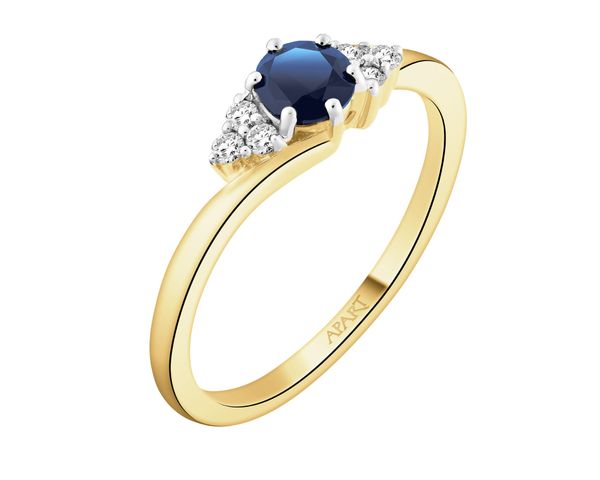 Pierścionek z żółtego złota z brylantami i szafirem – próba 585