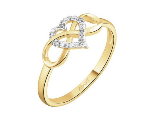 Pierścionek z żółtego złota z diamentami - nieskończoność, serce - 0,01 ct - próba 375
