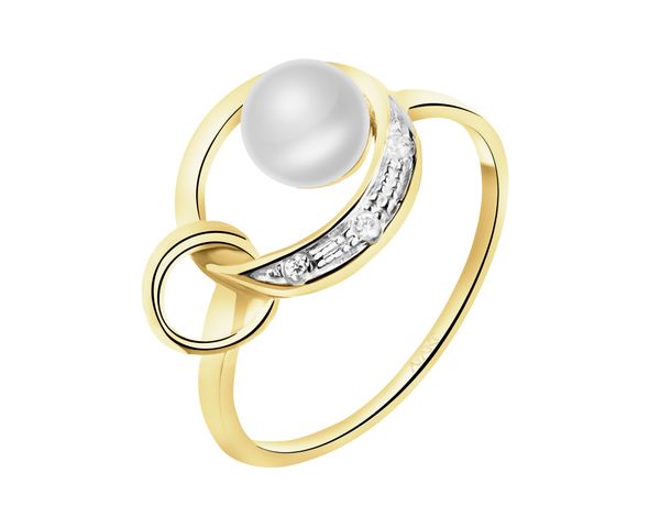 Złoty pierścionek z perłą i cyrkoniami – AP543-5679. Żółte złoto rodowane