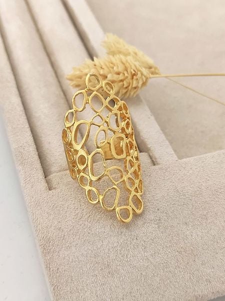 – materiał: mosiądz- powłoka: złoto- rozmiar: elastyczny Wskazówka: Zdjęcie produktu w powiększeniu.