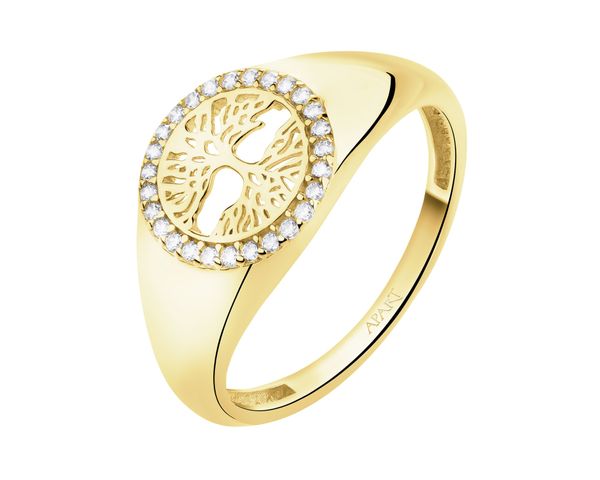 Złoty pierścionek z cyrkoniami – sygnet – drzewko – AP544-0795. Żółte złoto
