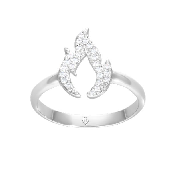 Pierścionek Płomień Miłości z cyrkoniami, posrebrzany. Płomień symbolizuje nie tylko ciepło i światło, ale również pasję, energię i miłość. Autorska kolekcja „Płomień Miłości’’ to biżuteria zainspirowana płomieniem, który odzwierciedla moc pięknego uczucia jakim jest miłość. Wielkość elementów: 1,2 cm Pierścionek wykonany z mosiądzu pokrytego srebrem próby 925.