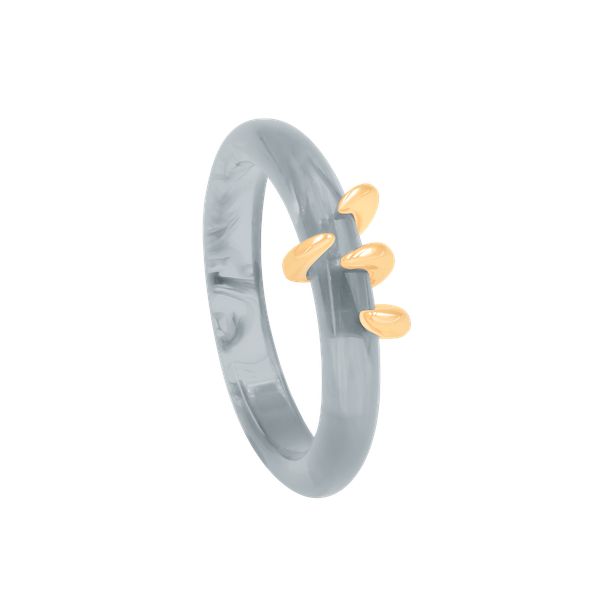 Forza to autorska kolekcja pełna symboliki i wartości takich jak wolność, odwaga, niezależność i energia. Niepowtarzalny design dodaje biżuterii wyrazistości i niezwykle modowego charakteru.Pierścionek wykonany z żywicy poliestrowej oraz mosiądzu pozłacanego 18-karatowym złotem