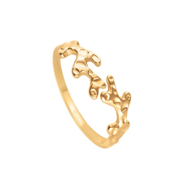 Pierścionek Koral pozłacany. Koralowiec, uznawany za symbol siły, odrodzenia oraz głębokich relacji, stał się inspiracją dla autorskiej kolekcji Lilou – Koral. Kolekcja Koral to subtelny hołd dla natury, której piękno wyrażone zostało w ażurowych, lekkich formach i nieregularnych kształtach inspirowanych strukturą koralowca. Pierścionek został wykonany ze stali szlachetnej pokrytej 18-karatowym złotem.
