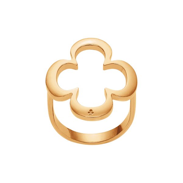 Koniczyna jest symbolem szczęścia i pomyślności. Pierścionek pozłacany 18-karatowym złotem.