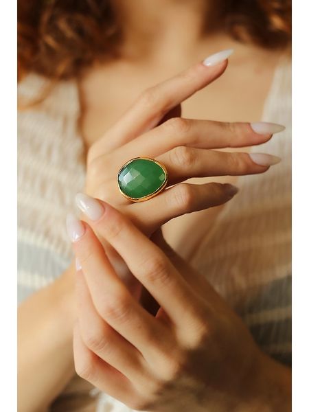 – materiał: mosiądz- powłoka: złoto- rodzaj kamienia: tygrysie oko- kolor kamienia: zielonyWskazówka: Zdjęcie produktu w powiększeniu.