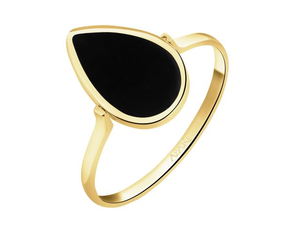 Złoty pierścionek z onyksem syntetycznym – łezka – AP544-2803. Żółte złoto