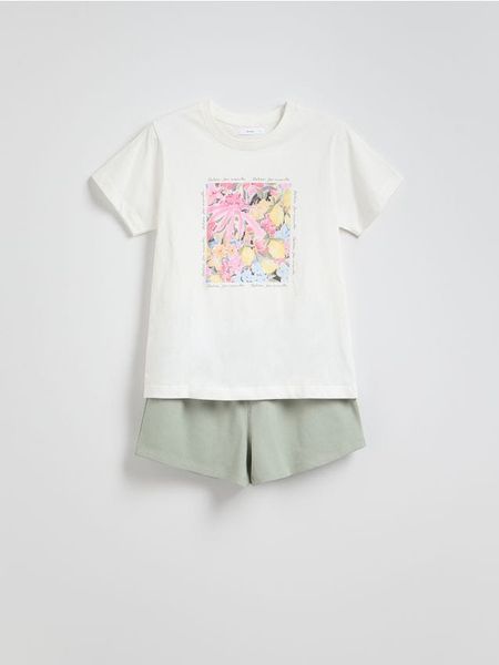 Piżama składająca się z t-shirtu i spodni, uszyta z bawełny.