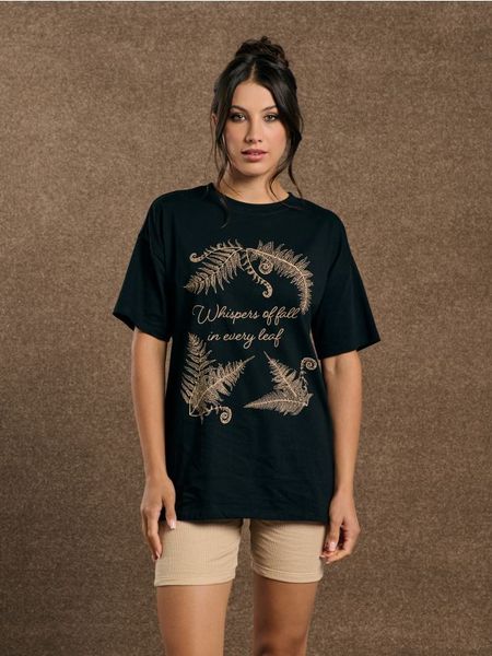 Sinsay – Piżama dwuczęściowa – czarny – okrągły dekolt,obniżona linia ramiona,koszulka oversize z krótkim rękawem,elastyczny pas,prążkowany materiał kolarek