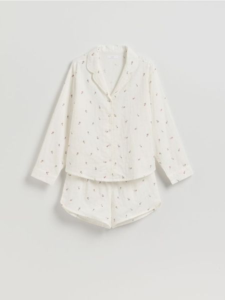 Piżama składająca się z koszuli i szortów, uszyta z bawełny.