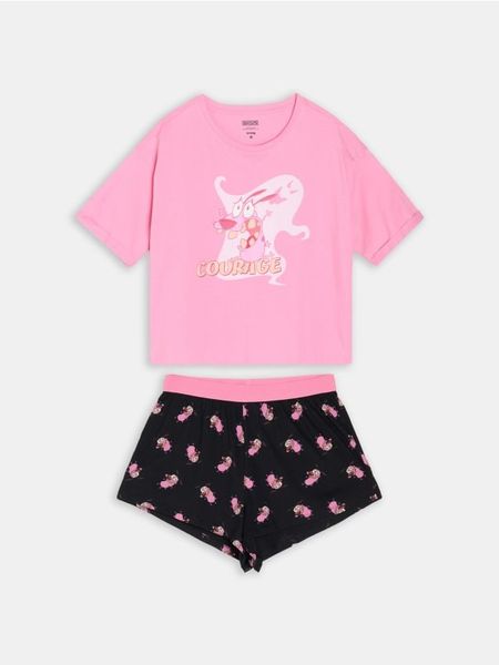 Sinsay – Bawełniana piżama dwuczęściowa Courage the Cowardly Dog – różowy –