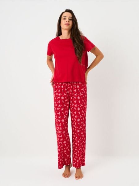 Sinsay – Bawełniana piżama dwuczęściowa – czerwony –