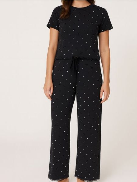 Piżama dwuczęściowa z domieszką wiskozy – czarny