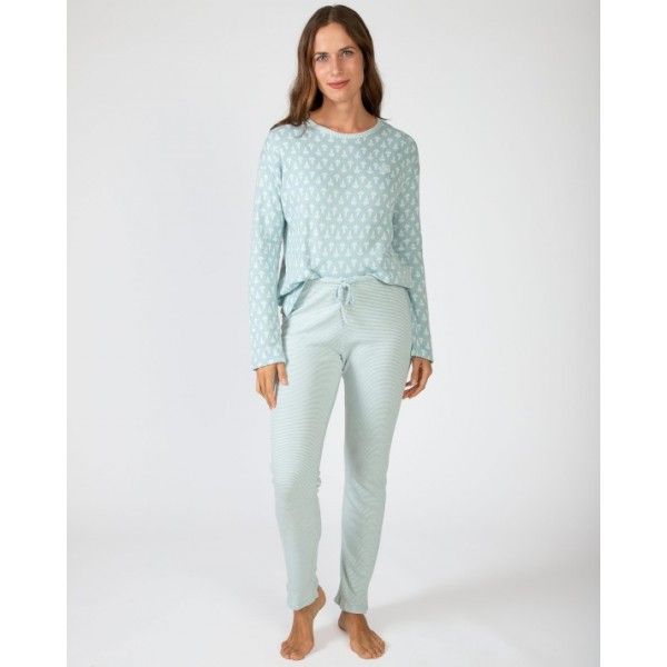 Piżama damska Massana P751250 w kolorze miętowym to miękki, bardzo wygodny komplet wykonany z dwustronnej dzianiny o delikatnej, żakardowej strukturze. Bluzka z długim rękawem ma subtelny wzór oraz okrągły dekolt z kontrastową lamówką. Spodnie w drobne paseczki posiadają elastyczną talię, dzięki czemu świetnie dopasowują się do sylwetki. Model idealny do snu i domowego relaksu, lekki, […]