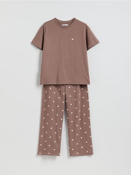 Piżama składająca się z t-shirtu i spodni, uszyta z bawełny.