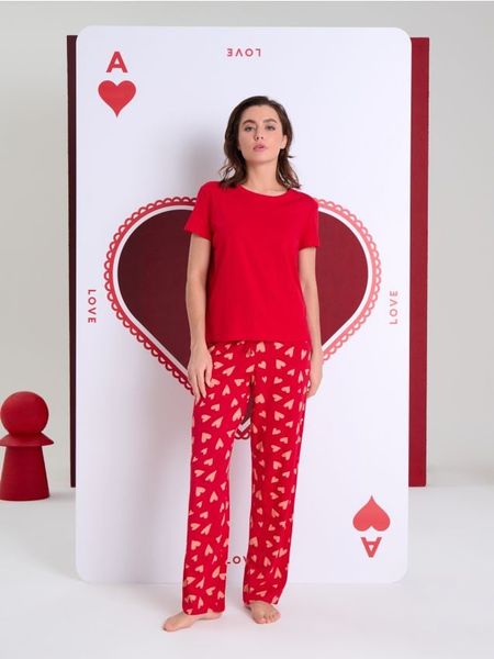 Sinsay – Bawełniana piżama dwuczęściowa z motywem serca – czerwony –