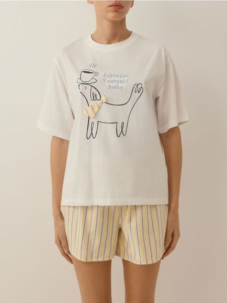 Dwuczęściowa piżama z nadrukiem – jasnożółty