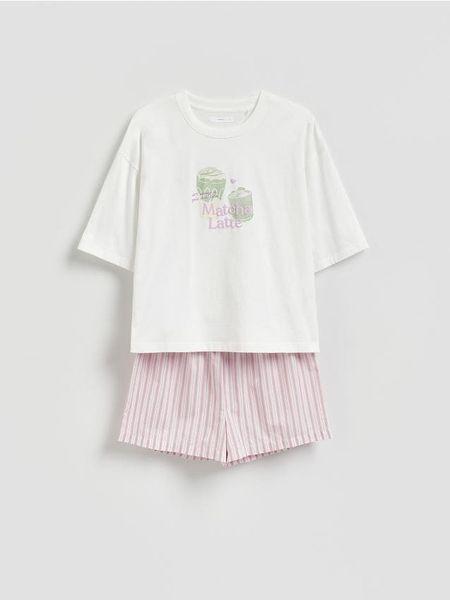 Dwuczęściowa piżama o swobodnym kroju, wykonana z bawełny.