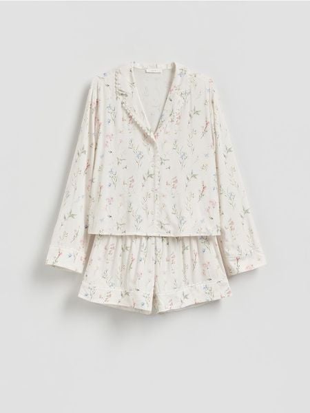Dwuczęściowa piżama o prostym kroju, wykonana z tkaniny z wiskozy.