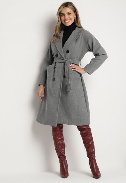 Szary Płaszcz Dwurzędowy Wiązany Vepha