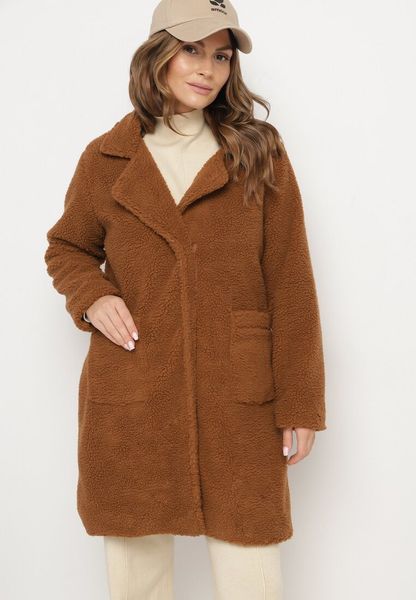 Brązowy Futrzany Płaszcz Ozdobiony Kieszeniami Mortisa