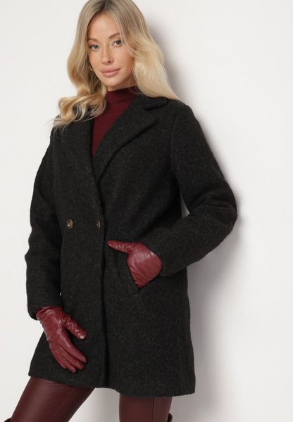 Czarny Płaszcz Boucle Dwurzędowy z Kieszeniami Enathe