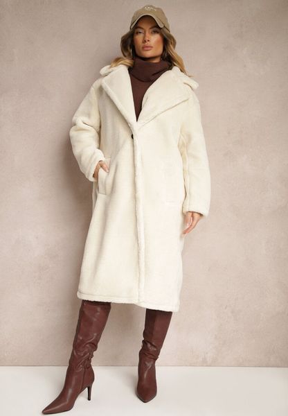 Jasnobeżowy Długi Płaszcz w Stylu Futerka Deozola