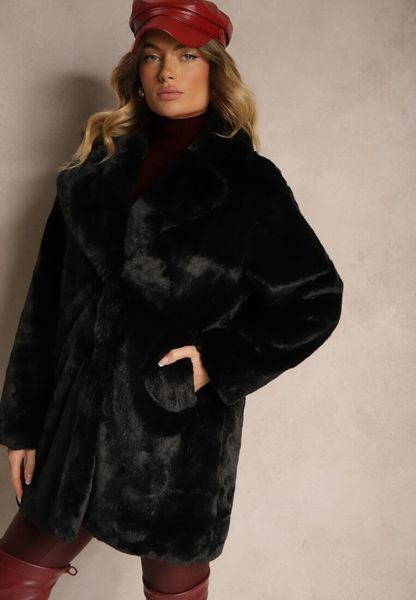 Czarny Klasyczny Płaszcz Futrzany Vennira