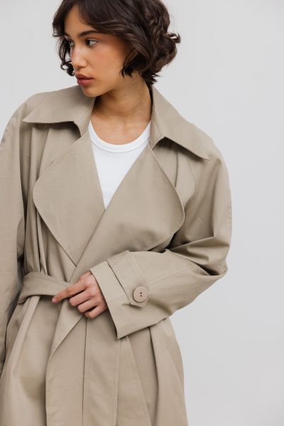 Klasyczny bawełniany trencz w kolorze LIGHT BEIGE – VENICE-M/L