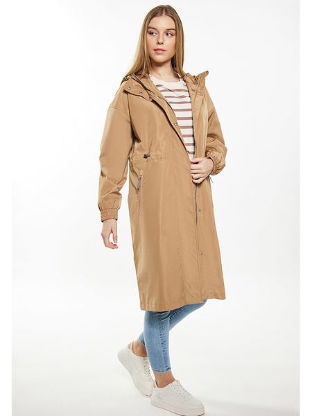 – wodoodporność- wiatroodporność- kaptur: przymocowane tasiemki- zapięcie: kryty zamek błyskawiczny- talia: wewnętrzny ściągacz tunelowy- zakończenie rękawów: elastyczne- zasuwane kieszenie boczne: 2- krój: luźny- look: jednokolorowy