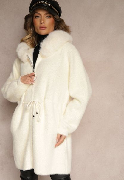 Jasnobeżowy Długi Płaszcz ze Ściągaczem w Pasie Zdobiony Futrem Delithriel