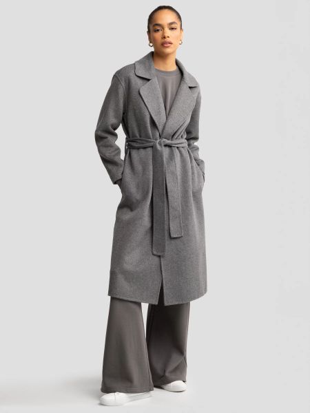 Płaszcz damski wełniany wiązany szary Oshana 903