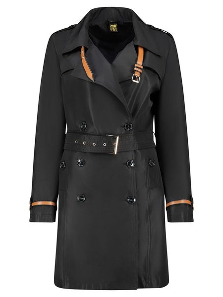 – kołnierz: z klapami i klamrą- zapięcie: listwa guzikowa- zakończenia rękawów: z patką- zdejmowany pasek: tkanina- kieszenie: wpuszczane- krój: prosty- dolny brzeg: z rozcięciem- look: jednokolorowy