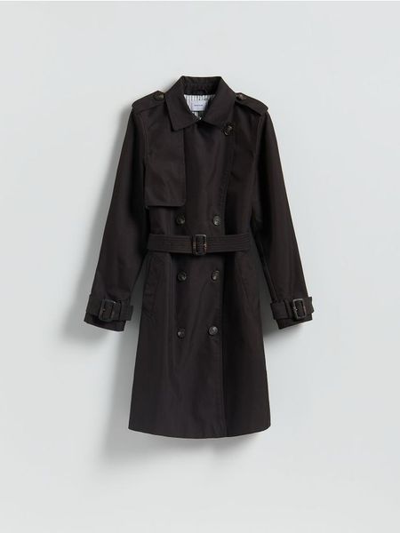 Dwurzędowy trencz z paskiem – ciemnobrązowy