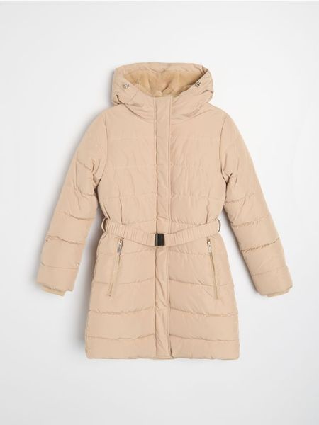 Sinsay – Pikowany płaszcz z kapturem – brązowy –