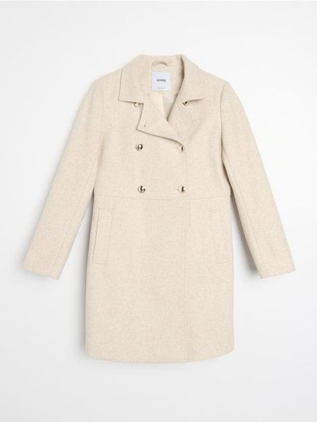 Sinsay – Płaszcz z guzikami ozdobnymi – kremowy –