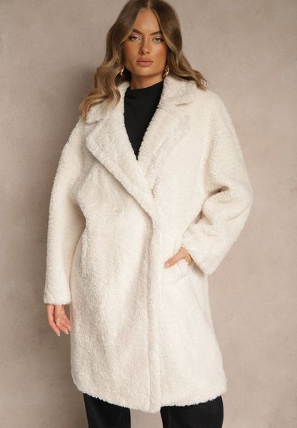 Biały Płaszcz Teddy o Dwurzędowym Kroju Oversize Azzena