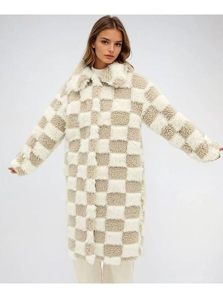 Monki Płaszcz pluszowy w kolorze beżowo-kremowym rozmiar: S