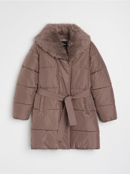 Sinsay – Pikowany płaszcz z futerkiem – fioletowy –