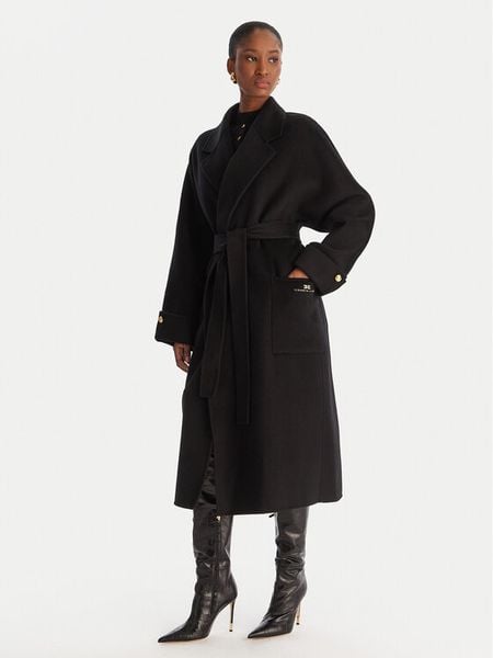 Elisabetta Franchi Płaszcz wełniany CP-68D-56E2-V820 Czarny Regular Fit