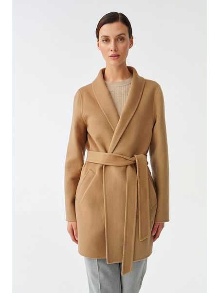 – z dodatkiem wełny- kołnierzyk: szalowy- zapięcie: wiązanie- kieszenie: wpuszczane- krój: prosty- look: jednokolorowy