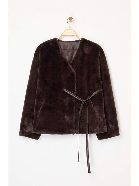 trendyol Płaszcz pluszowy w kolorze ciemnobrązowym rozmiar: M