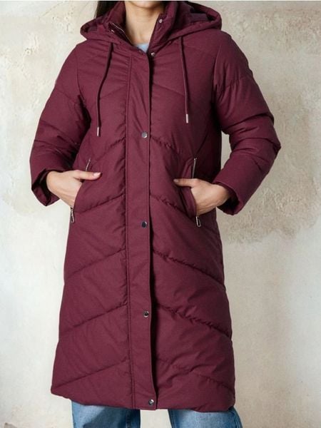 Pikowany płaszcz z kapturem – czerwony