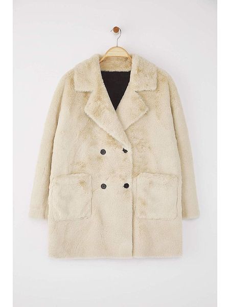 trendyol Płaszcz pluszowy w kolorze beżowym rozmiar: 42