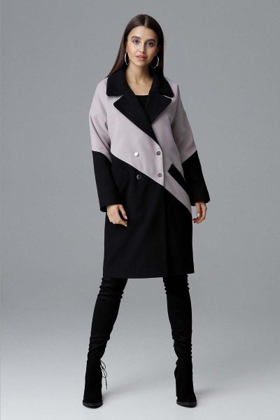 Czarno Beżowy Dwukolorowy Płaszcz Dwurzędowy