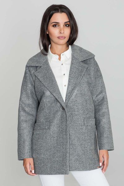 Szary Krótki Stylowy Płaszcz Damski Zapinany na Jeden Guzik