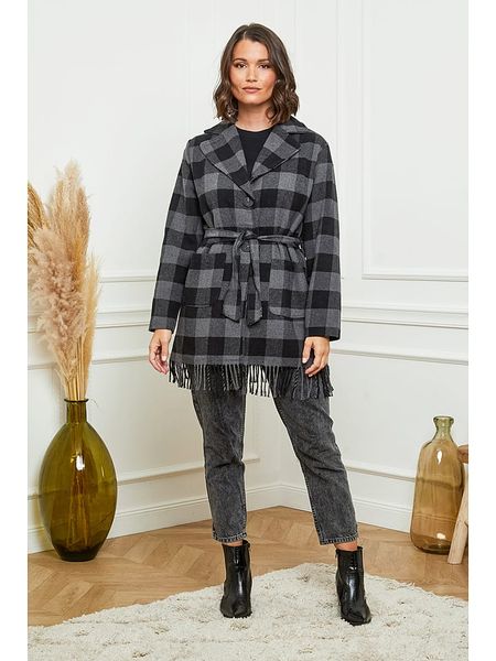 – z dodatkiem lnu- kołnierzyk: z klapami- zapięcie: listwa guzikowa- zdejmowany pasek: tkanina- kieszenie: naszyte- krój: prosty- detale: frędzle- wzór: kratkaWskazówka: Na metkach odzieży tej marki znajdują się rozmiary francuskie. Rozmiarówka została przez nas przeliczona. Podane do wyboru warianty rozmiarów odpowiadają standardowym europejskim rozmiarom konfekcji. Prosimy zapoznać się z zamieszczonym objaśnieniem rozmiarów: