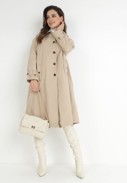 Beżowy Płaszcz Trencz Oversize na Guziki Kalei